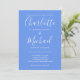 Com nomes de estilo de assinatura, este convite de casamento elegante pode ser personalizado com suas informações em letras elegantes em um fundo azul centaurea com a foto escolhida no verso. Você pode personalizar a cor do fundo para combinar com o tema do seu casamento. Criado por Thisisnotme©