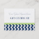 O salão de beleza customizável, o certificado de presente dos termas ou do cabeleireiro em azuis marinhos escuros elegantes e retros, os ziguezagues verde-maçã e brancos brilhantes da viga listram o teste padrão. Personalize com seu próprio texto para um certificado de presente personalizado para seu negócio. Contacte-nos para pedir uma cor feita sob encomenda ou uns produtos de harmonização para sua empresa.