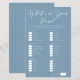 Um jogo de chá de panela azul empoeirado O que há na sua bolsa para um evento costeiro de verão no mar. Personalize estas folhas azuis de papel de cinza clara com as suas próprias opções pontuais para os seus amigos. Um divertido jogo de festa de solteira personalizável com um esquema de cores sólidas minimalista.
