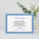 Este simples agradecimento pelo seu cartão de condolências apresenta uma borda azul-cinza e prata para o seu agradecimento pela mensagem de condolências. As palavras "Obrigado" aparecem em uma elegante escrita azul-cinza que também é usada para o nome do seu ente querido. O seu agradecimento aparece em preto para fazer um lindo contraste. O verso deste cartão plano é prata para complementar a borda prateada na frente do cartão. Copyright sympathythankyou