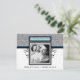 Cartões salve a data com um elegante quadro preto e azul de rolagem ao redor da sua foto. Placas formais com envelopes incluídos.