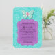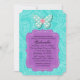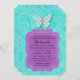 Há uma menina no caminho! Comece a comemorar com este adorável convite para chás de fraldas. Ele tem um fundo azul brilhante de impressão azul de azul-aqua. Ao longo do centro no topo está uma borboleta azul-aqua bolinhas. Há uma etiqueta roxa brilhante esboçada em branco no centro onde você personaliza com as informações do seu partido. Veja as outras cores e produtos que oferecemos.