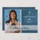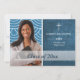 Seu filho ou filha está se formando na Escola Cristã? Christian College ou Seminário? Informe seus amigos e familiares que agora são um formando com este anúncio personalizado de imagem em azul com cruz. Mostrado aqui para um segundo grau, você pode usar este convite para qualquer nível de educação de mais alto. Personalize-o com sua própria foto, nome e data para uma única memória de manutenção. Os detalhes da parte traseira podem ser personalizados com seu próprio texto.