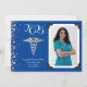 Celebrar o novo médico do formando de medicina da faculdade de medicina com este anúncio de graduação de prata e azul caducius! Elegante com uma fronteira de fotos vintage e sotaques de confete prateado! Perfeito para quem se forma como md ou faz doutorado!
