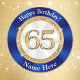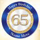 Azul de Sapphire Barato, 65.º Vinhetas de Aniversário com o seu NOME, DATA DE Aniversário ou TEXTO ou Apagar. Você também pode TRANSFERIR isso para MILHARES de outros suprimentos de festa de aniversário 65, decorações e presentes.