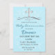 Azul-bebê, Branco e Prata com uma cruz decorativa rico faz este convite especial. O esquema de cores é perfeito para esta ocasião. Podem ser utilizados como comunhão, confirmação, batismo e crivação