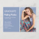 Informe à família e aos amigos o quão orgulhoso você está do seu formando com este anúncio/convite de fotos da formatura moderna, azul e branco. Personalizado com o retrato do seu mais velho ou outra foto favorita e todas as suas informações. Este cartão foi projetado para ser tudo o que você precisa, desde o anúncio da foto, até o convite da cerimônia de formatura, até o convite da festa de formatura. Ele também tem espaço para listar suas realizações de formando e seus planos para o futuro.