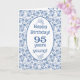 Um 95th cartão de aniversário muito bonito, com um teste padrão floral do azul de índigo na capa e uma guarnição do laço do falso no interior, onde você pode igualmente personalizar a mensagem. Este design é parte da coleção fino e Painterly do "índigo" e pode facilmente ser ajustado para caber todo o tamanho do cartão.