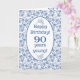 Um cartão de aniversário muito bonito do 90, com um teste padrão floral do azul de índigo na capa e uma guarnição do laço do falso no interior, onde você pode igualmente personalizar a mensagem. Este design é parte da coleção fino e Painterly do "índigo" e pode facilmente ser ajustado para caber todo o tamanho do cartão.
