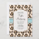 Este convite de aniversário bonito e à moda do impressão do leopardo com pontos do leopardo e uma luz impressa - o design do olhar da fita azul e da pérola é perfeito para a menina do aniversário que gira toda a idade. Por favor, não note lá são nenhum enfeite tridimensional adicionado a este convidam. É imprimido horizontalmente. © Chrissy H. Estúdio dos trabalhos de arte, LLC. Todos os direitos reservados.