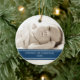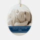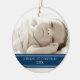 Os primeiros enfeites de natal do bebê customizáveis com sua própria foto de família em azuis marinhos e no branco escuros elegantes. Um presente à moda do Natal para a mamã esta época natalícia.