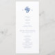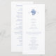 Chic com elegância jovem. Este doce cartão azul e branco do programa de casamento exumenta um tom fresco, moderno e jovem. A frente do cartão inclui um conjunto contemporâneo de fontes em um monograma azul empoeirado e elegante de casal floral, contra um fundo branco nítido. Estão incluídos os obrigados que você envia, a ordem da cerimônia e a sua própria lista de festas de casamento no verso.