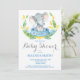 Cartão azul e cinzento do convite do chá de fraldas do elefante do menino. O chá de fraldas do menino convida. Flor floral e licença da aguarela. Para uma personalização mais adicional, clique por favor "personalizam-no" botão e usam-nos nossa ferramenta de design para alterar este modelo.