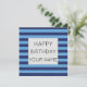 Um padrão legal de azul claro e listras azuis claras e um modelo de texto Feliz Aniversário. Clique em personalizar para adicionar seu nome.