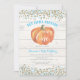 Convite do aniversário da abóbora primeiro. Convite de aniversário da queda do menino. Fundo de madeira rústico azul dos confetes alaranjados e Dourados do brilho. Azul. ø Primeiro Bday convida. ø ò ó 4o 5o 6o 7o 8o 9o 10ns, algumas idades. Para uma personalização mais adicional, clique por favor "personalizam-no" botão e usam-nos nossa ferramenta de design para alterar este modelo.