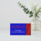 Os cartões de visitas profissionais e elegantes com um cetim vermelho drapejam a beira do olhar e um contraste, fundo dinâmico dos azuis marinhos dá um olhar patriótico agradável. O excelente para as próximos eleições políticas, etc. adicionam facilmente seu nome da empresa e seu nome ou o outro texto na parte dianteira destes cartões projetados elegantes, à moda, artísticos. É mostrado na parte dianteira o texto vermelho e o texto branco e na parte traseira é texto branco e você pode facilmente mudar o estilo de pia batismal e colori-los assim como o fundo azul. Apenas clique sobre "personalizam-na" e clicam-na então sobre "editam" e "fundo" para mudar então a cor azul. Personalize com seu próprio texto facilmente na parte dianteira e na parte traseira. Um excelente relativo à promoção de vista profissional do cartão para algum negócio e uma ocupação simples, mas clássicos.