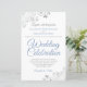 Estes convites para casamento baratos e amigáveis são a escolha perfeita para a aula, estilo e beleza num orçamento. O design de tamanho maior apresenta um texto cor azul empoeirado ou com piscar de olhos em um fundo branco clássico, com ornamentados de cinza prateada e espirais nos cantos. A tipografia inclui a inscrição em rico para um estilo simples e elegante. Uma maneira maravilhosa de convidar seus amigos e família para compartilhar sua alegria em seu dia especial sem quebrar o banco.