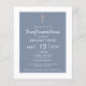 Papel acessível personalizável, convite de comunhão, apresentando um fundo azul empoeirado moderno e branco limpo com uma cruz de efeito dourado ornamentado, com um reverso de listra.