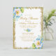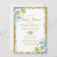 Azul-Cria Floral e Dourado com Dourado Convite para Chá de fraldas Leve