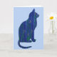 Azul Floral Gato no Cartão de Nota de Arte Azul