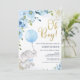 Azul Floral Oh Boy Elephant Chá de fraldas Convite