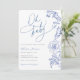 Chá de fraldas Floral Azul que homenageia a mãe! Design apresenta uma borda de flores desenhadas à mão azul. Personalize com suas informações ou clique em "Clique para personalizar mais" para editar estilos de fonte, tamanho e cores.