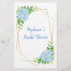 Este cartão de jogo de chá de panela é Como você conhece a Noiva? Tem 10 perguntas para os jogadores responderem. O design apresenta flores azul-aquarelas hydrangea e design geométrica falsa dourada no verso. Personalize a parte de trás das cartas com o nome da noiva. Produtos correspondentes disponíveis.