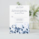 A cor do texto e do fundo neste cartão de resposta de casamento (rsvp) azul-marinho, azul-claro e branco é totalmente personalizável. Para alterar o texto, use a opção personalizar. Para alterações mais extensas no cartão, incluindo alterações na fonte, cor da fonte, cor do fundo ou posicionamento do texto, use a opção personalizar. Este é um cartão de resposta encantador e elegante para um casamento de inverno, primavera ou verão. Embora atualmente personalizado para um casamento, este cartão de resposta também funcionaria bem como um cartão de inserção de informações gerais de direção, recepção, acomodação e/ou casamento.