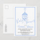 Este cartão-postal de chá de fraldas moderno apresenta um lindo berço de bebê com texto que significa "É um Menino" pendurado nele. Personalize este roteiro manuscrito em azul-bebê e preto. Personalize com seu nome e endereço de retorno no verso para um envio super fácil.