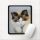 Gatinho aguçado azul bicolor de Ragdoll em um tapete do rato preto do fundo.