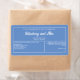 Rótulo para sabão ou produtos cosméticos com fundo azul pálido e texto branco. Possui espaço para o nome da sua empresa, ingredientes, informações comerciais e muito mais.