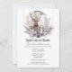 Um na moda e um design elegante sobre um fundo branco com a cabeça e os galhos de um grande emblema espreitando sobre o topo da folhagem de outono e bagas que tem uma lanterna e uma grande lua de cheio aquática atrás dela. A frente tem um bosque à noite, com uma lua de cheio e um saco solteiro à distância enquadrados por folhas de folhagem cor-de-rosa macia e azul-céu. A lua tem modelos mostrando os nomes dos casais que podem ser personalizados. Se você se casar no inverno, tenha uma terra maravilhosa de inverno, queda rústica | Casamento no outono ou no tema florestal, esta ilustração é perfeita para as suas necessidades.