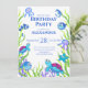 Azul Cuto Sob o Mar Bebê Chá Cute sob o convite para chás de fraldas do mar com água-viva, estrela-do-mar, tartaruga-do-mar. peixe e caranguejo. Perfeito para um chá náutico de um bebê criado no oceano.