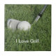 Tema de golfe azulejo cerâmico com foto de um clube de golfe e bola de golfe no gramado. Use-o como um trivet ou adicione um quadro e use-o como decor de parede.