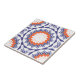 Belo azulejo cerâmico elegante no estilo mediterrânico, com formas geométricas em azul, branco e laranja.