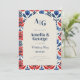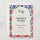 Este azulejo de talavera vermelho e azul inspirado no convite do casamento mexicano é a forma perfeita de convidar os entes queridos a celebrar o seu templo ou casamento de destino no México! Convite de casamento elegante com imagens florais e letras de arco, assim como cartas de monograma para o novo casal casado!