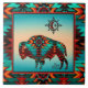 Brigue sua casa com este único "Um dos tipos" Azulejo de Buffalo no Sudoeste! Ele apresenta um Buffalo Sudoeste e Sol em um Fundo Turquesa e Sunset Laranja.. cercado por uma Fronteira Sudoeste em Turquesa, Laranja e Preto!