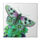 Arte Bonito de borboletas na forma de um gráfico digital de uma borboleta roxa e verde sobre uma flor que cobre este azulejo cerâmico. Use isto como um trivet ou adicione um quadro e use-o como decoração de parede para sua casa. Projetado para senhoras ou meninas que coletam ou simplesmente amam borboletas e natureza.
