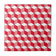 Esse azulejo cerâmico moderno apresenta um padrão isométrico em tons vermelhos e brancos personalizáveis com linhas finas e pretas.