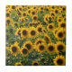 Um campo quente de girassóis adiciona toque decorativo ao azulejo cerâmico resistente. Azulejo pode ser adicionado a uma caixa de presentes de madeira, para um presente no estilo country home!