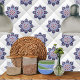 Azulejo cerâmico decorativo com medalhão azul e ve