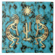 Brilhe sua casa com este Azulejo de cerâmica do sudoeste de Kokopelli único "Um dos tipos"! Ele apresenta um dois Dourados e negros do sudoeste de Kokopelli tocando flauta e dançando ao redor de um cacto sob o sol em um fundo de pedra azul-turquesa, preto e Dourado! Esta é uma Design de Arte Original do Artista Kerry Miller.