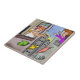 Um azulejo com um desenho engraçado sobre a lavanderia voando no rosto de um homem. Arte original de DBcartoons.