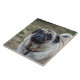 Uma bela fotografia de um cachorro giro impresso em um azulejo de cerâmica.