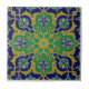Este azulejo é reproduzido de um azulejo original do século 18-19. O design é uma repetição de cheio e pode ser usado sozinho ou em múltiplos para criar uma grande área com padrões. Cores brilhantes de indigo, turquesa, ouro e verde. É bom o suficiente para armar e pendurar uma parede, usar como azulejo de parede, trivimentar, porta copos, ou colocá-la num pequeno cavalete como um objeto de arte. Também faz excelente lareira ao redor ou azulejos de destaque para backsplashes e azulejos de parede em cozinha, banheiro ou chá. Disponível em azulejos de 4,5 e 6 polegadas, bem como em outros itens.