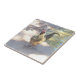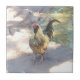 Um azulejo cerâmico com foto de um galo colorido.