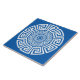 Azulejo cerâmico com chave grega (Meander), de cor branca, sobre fundo azul. Esta design do famoso e popular padrão grego da linha contínua pode ser editada para mudar sua cor, se você quiser. Você também pode mudar a cor de fundo do design, se quiser.