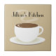Um azulejo que caracteriza uma ilustração de uma chávena de café em uns pires. Personalize com seu nome.