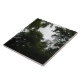 Este azulejo incrível apresenta uma fotografia tirada de dentro de uma floresta densa. A fotografia mostra a escuridão das árvores e uma pequena área do céu das cinzas. O resultado é uma cena estranha e atmosférica.