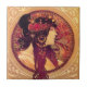 Azulejo de Alphonse Mucha Donna Orechini. Propaganda da litografia. Alphonse Mucha era um mestre de propagandas de Nouveau da arte e de posters comerciais. Donna Orechini é um retrato impressionante do perfil de uma mulher que veste uma mantilha pesadamente jeweled com rubis e crescentes escuros do ouro. O cabelo da mulher é marrom escuro e seus olhos são do mesmo modo obscuridade. É cercada pela ornamentação pesada típica do trabalho de Mucha. Um presente bonito para fãs de posters de Nouveau da arte, de Alphonse Mucha, e de impressões do vintage.